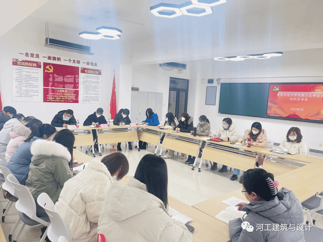 按照上级党委的安排部署,建筑与设计学院教工党支部于2月9日上午召开2022年度组织生活会。会议以全面贯彻习近平新时代中国特色社会主义思想,紧紧围绕深入学习贯彻党的二十大精神,以奋发有为的精神,凝聚全校师生力量,聚焦学校中心工作和本科教学合格评估工作为主题,紧密结合学校党的建设和思想工作,联系支部党员思想和工作实际,查摆不足,开展批评和自我批评。