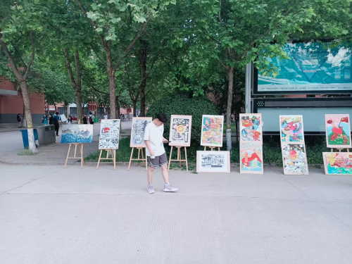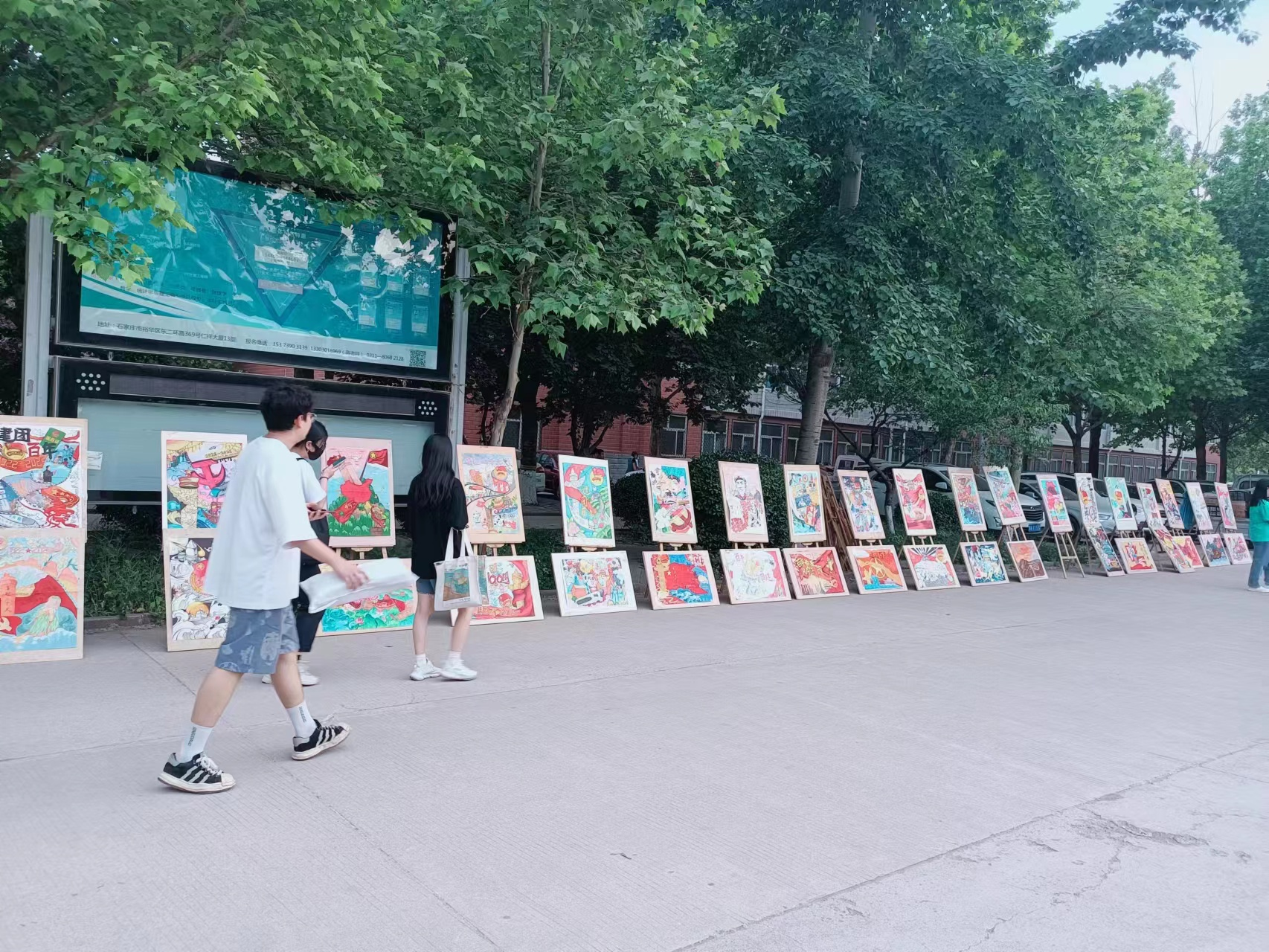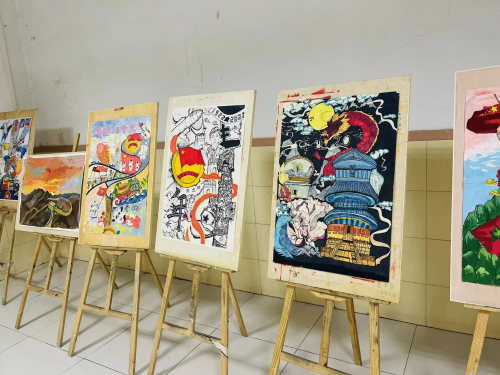 活动开始期间,参与手绘海报的人员于2022年4月25日到5月4日于主教八楼画室进行手绘海报的创作,可独立完成,也可组队共同合作,小组成员进行合理的任务分配,部分同学负责海报的前期工作,对所画图样进行定位及起行,部分同学负责大面积的色块,对画面进行整体的铺色,其余同学对画面进行塑造与深入刻画及勾线,画出物体的明暗面及细节,保证画面的完整性与统一性。这些作品在校园呈现出一片“红色”的海洋,让我们一起来看看大家的作品吧~