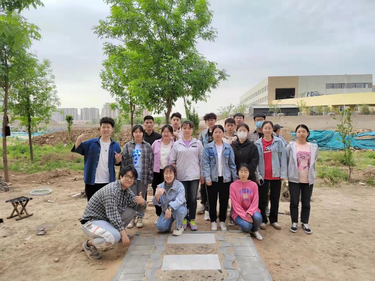 19级风景园林班25人,分为3组,21风景园林专接本17人,分为2组,对8号楼后进行园路铺装,首先进行清理场地,之后试拼图案,定点放线,准备路槽,安装道牙,对场地找平夯实,铺筑水泥砂浆结合层,对面层进行铺筑,最后进行压平、扫缝。用时两天半,同学们克服炎热的天气,勤劳苦干,细致耐心,在翟美珠老师的指导和帮助下顺利完成了铺装实训。