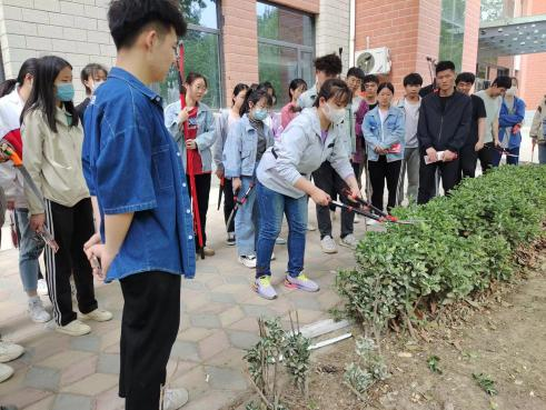 4月27日上午2019级风景园林班与2021级风景园林专接本班在主教停车场绿地和实训楼前绿地进行树木整形修剪,通过练习修剪树枝,能够提升我们对树木外形的审美能力,促进了我们敢于动手实践,同时我们也对这几类工具的使用有了全面的了解,通过自己动手去修剪这些绿篱,也能体会到园林工人的不易。(翟美珠老师为我们演示讲解动作要领及绿篱修剪前后如下图所示)