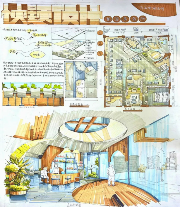 这次作品展览可以大大缩短同学们自己漫无目的地探索,积累更多的设计经验,有能力在短时间内拿出最卓有成效的设计成果,并且在一定程度上启蒙了低年级同学对快题设计的了解,进一步促进了高年级同学们相互学习,共同进步。经过几位老师综合评议,挑选出51幅优秀作品,供同学们相互学习。