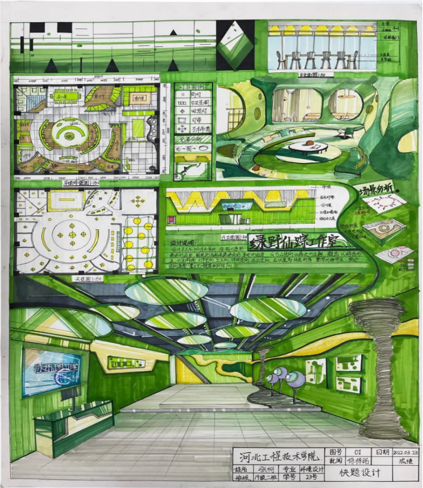 此次线上展览是环境设计专业大三学生在快题周期间的优秀作品呈现。快题设计需要打破设计常规,需要高速、优质地在较短的有限时间内提出一个可供发展的方案。这种方式强调设计者个人的设计素质与修养,设计能力与表现相辅相成,缺一不可。高年级学生具备了一定的设计能力和专业知识的积累,经过快题周5天时间集中强化训练,在设计能力和表现能力上有一个较大的飞跃。