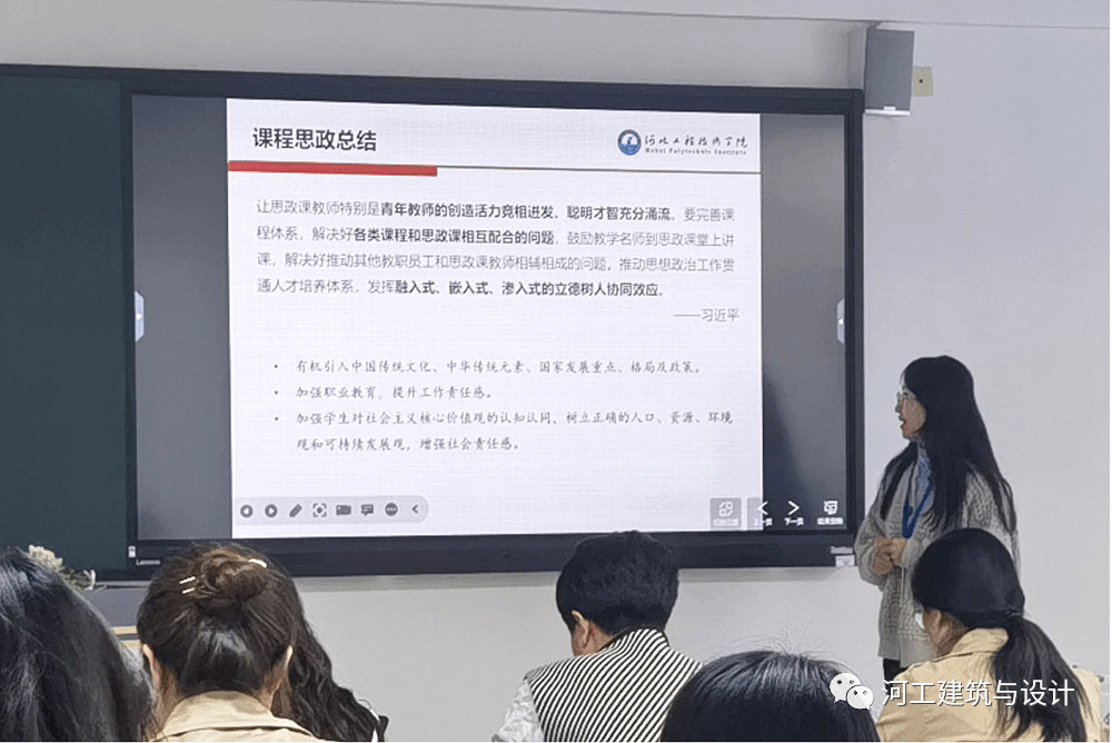 为推动全面落实立德树人根本任务,贯彻“价值塑造、能力培养、知识传授”三位一体的育人理念,实现“门门课程有思政,人人肩上可育人”的目的,全力配合学校推进本科合格评估工作,3月29日下午在知行楼602会议室,举办了建筑与设计学院第二届课程思政讲课大赛。