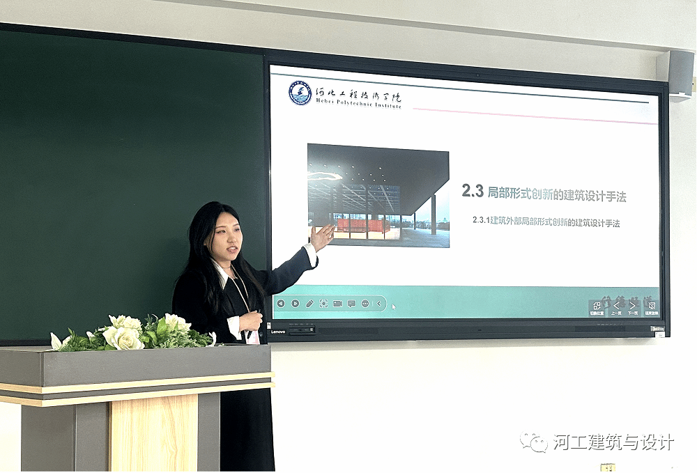 本次大赛共有九位教师参加决赛,比赛中各位参赛教师围绕学科专业进行了充分的准备,精彩纷呈。孙慧斌老师以赵州桥的拱结构为例,阐述了我国悠久的建筑技术发展史;郑琪老师以无障碍坡道设计为切入点,诠释了建筑的人文关怀;牛文玥老师以长信宫灯引入,细数汉唐工匠智慧;马村老师着眼于办公空间,阐述了现代建筑的人本主义;谷雨欣老师立足人与自然,介绍了景源分类;高丹老师以藻井彩绘为素材,梳理了装饰色彩的特点;龚洁净老师以敦煌壁画为内容,用英语讲述了中国故事;曹静静老师以我国C919大飞机研制为着力点,讲说我国航天的飞速发展;王彤匀老师倾力于贝聿铭的卢浮宫扩建工程,以提升审美力为旨归,展示了建筑与美的碰撞。最终郑琪获得一等奖,谷雨欣、龚洁净获得二等奖,高丹、牛文玥、王彤云获得三等奖。