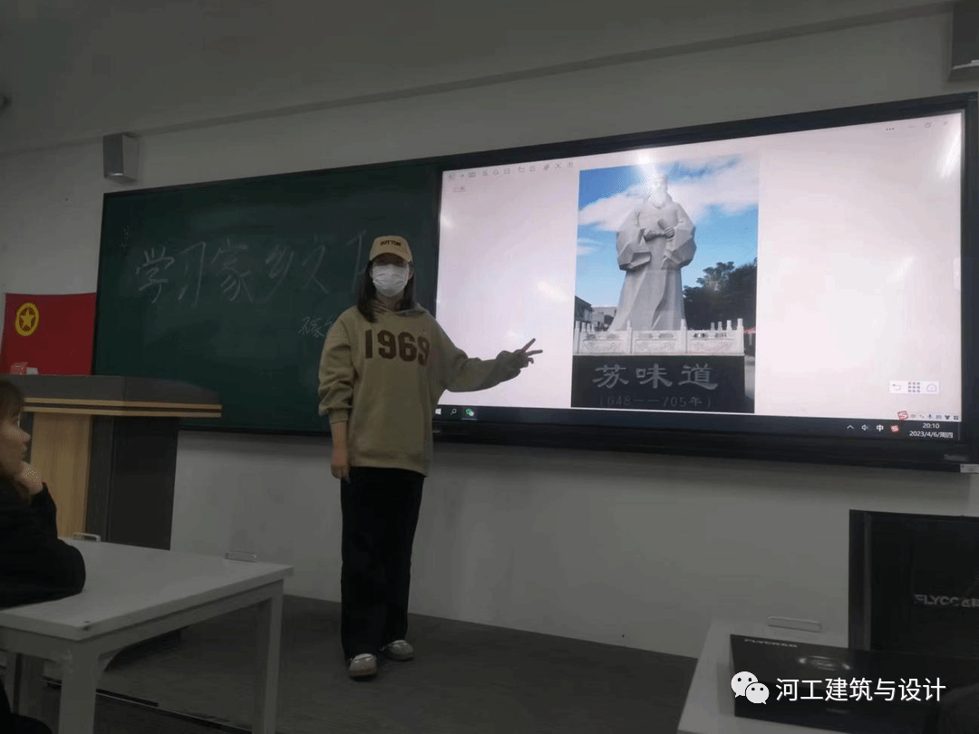 生活的全部意义,在于无穷地探索未知的东西。为了促进班级同学的团结,了解来自各地独有的家乡文化,我校建筑与艺术学院2022级艺术设计5班同学于2023年4月6日星期四在主教606举办“一班一品”主题活动,由班长和副班长组织做好准备工作,要求同学们准时到达教室,班会于晚上20:00正式开始。同学们在教室做好准备,本次活动由刘佳怡同学进行分享她的家乡——石家庄栾城,由宣传委员进行拍照。活动开始,刘佳怡同学进行对石家庄栾城的简单介绍。