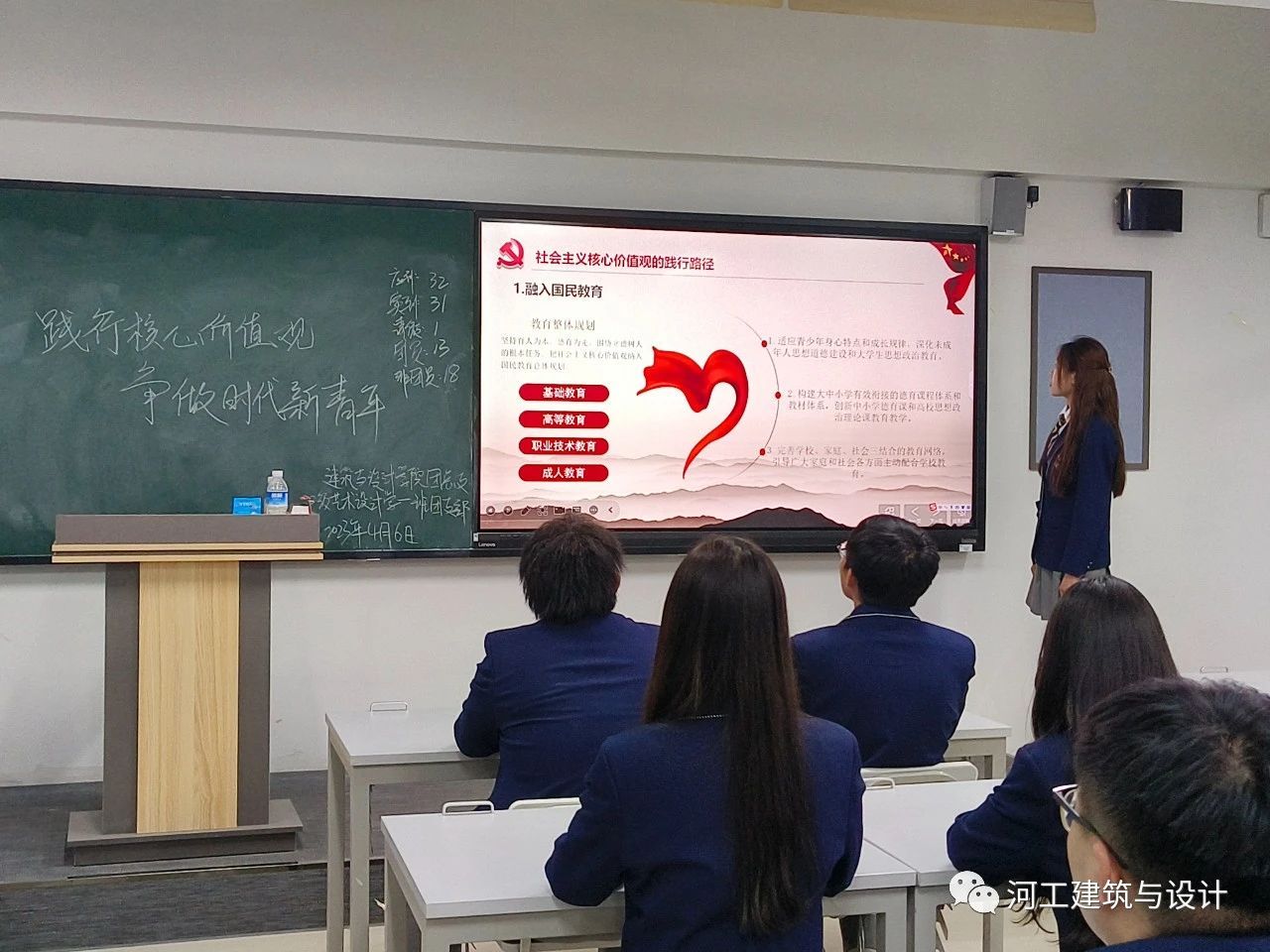 为深入学习党的二十大精神,为了进一步学习宣传社会主义核心价值观,大力弘扬爱国主义、集体主义精神。为此我校建筑与设计学院团务部于4月6日开展了“社会主义核心价值观”专题团课学习教育活动。