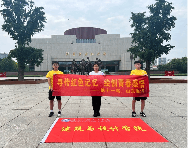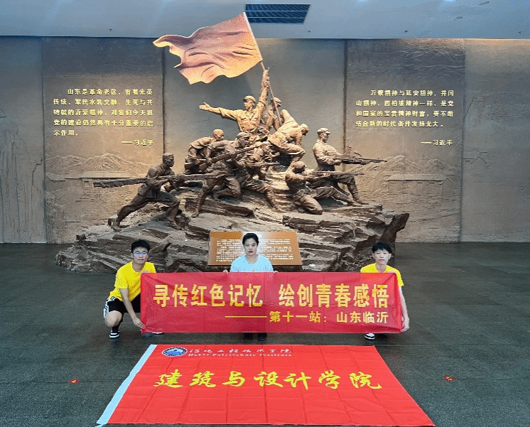 为传承红色基因,发扬革命精神,强化理想信念,锤炼党性修养,河北工程技术学院建筑与设计学院“绘忆红色”小队来到了山东临沂--沂蒙革命纪念馆。作为一座重要的红色教育基地,通过参观,使我们更加深刻地感受到了沂蒙精神的伟大意义和深远影响。馆内陈列的历史文物和图片让我们仿佛穿越到了那个激情澎湃的革命时代。这些珍贵的展品见证了沂蒙人民英勇奋斗的历程,也向我们展示了他们为实现共产主义理想所付出的巨大牺牲。通过观览,我们不仅对沂蒙革命的历史有了更加深入的了解,更对英雄们的崇高精神深感敬佩。