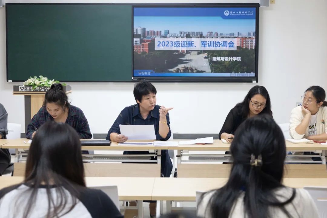 9月7日下午建筑与设计学院在主教602召开了建筑与设计学院迎新、军训协调会。建筑与设计学院党总支书记兼任学管副院长张玲玲、学管办、就业办、团总支、全体辅导员、学生代表 、志愿者代表、军训教官参加此次会议。