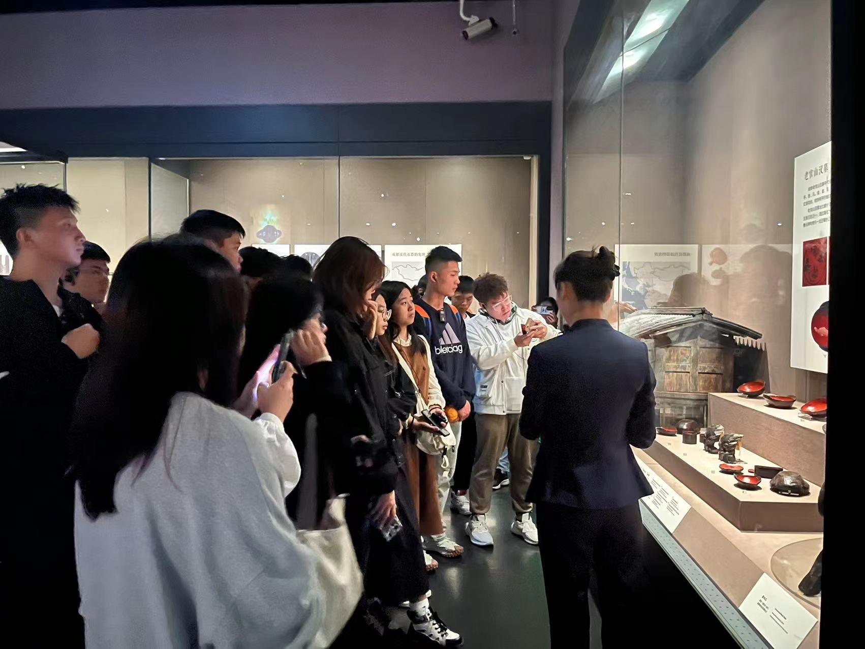 同学们认真参观文物,学习展陈设计