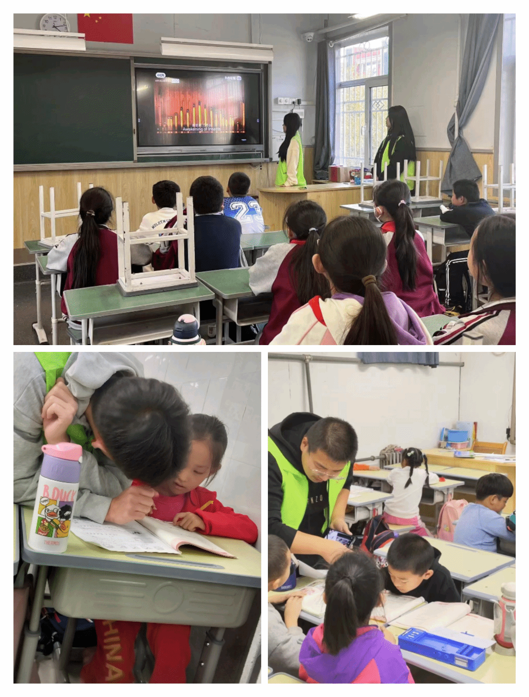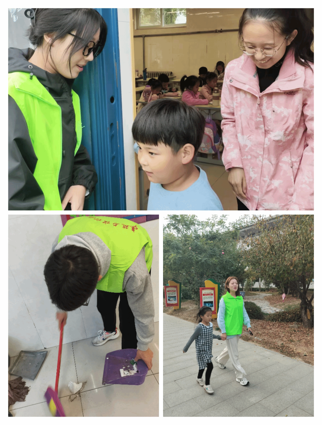 在这次活动中,志愿者们向老师学习经验,共同探讨问题,带领孩子们学习,和他们散步聊天,并且在孩子们下课后打扫班级卫生保持班级干净,给孩子们营造一个良好的学习环境。
