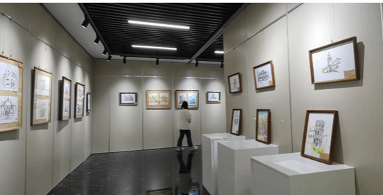 学生们深切的感受着青岛市市南区的每一条街道的古建筑,穿梭其中品味其历史的味道,造型的特点,色彩的魅力。在专业老师的悉心指导下,力求将理论应用于实践,指导实践。用点线面等手段体现历史的味道、独特的建筑造型和那美丽的色彩。同时,在教师的悉心指导和点评下,帮助学生探索建筑写生和采风的要点,迅速掌握表现建筑特色的技巧和表现手法,并取得不错的效果。