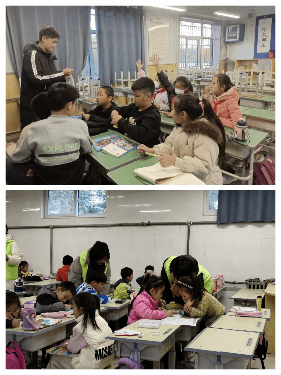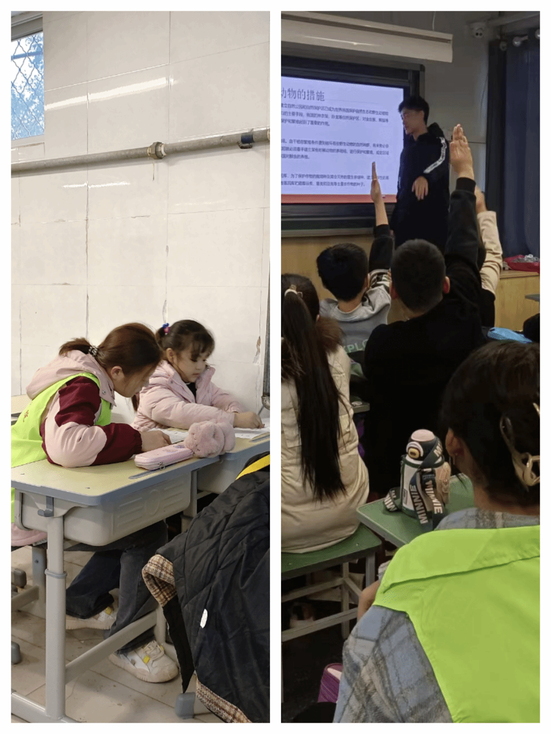 在这次活动中,我们针对小学不同年级的学生开展了多元化的课堂活动。志愿者老师们认真备课,向小朋友们展示人与动物的友好互动和动物的特性,让小朋友们更好的体会到自然的和谐。同时,还进行了提问环节,小朋友们积极举手回答,认真回答问题。自习课期间,小朋友们秩序良好,认真完成作业,志愿者老师也耐心解答小朋友的疑难。
