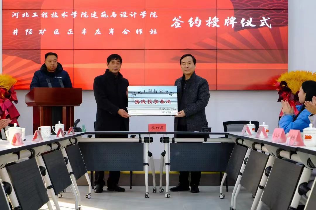 为进一步提升我院各专业学生实践能力,传承和弘扬本地优秀红色文化与乡土文化,充分利用好当地资源优势,不断深化实践基地的特色育人理念,展现红色历史,传承红色基因,增强民族自豪感。12月5日,建筑与设计学院院长武勇、党总支书记副院长张玲玲、副院长李江涛携环境设计系系主任及骨干教师与井陉矿区正丰左岸合作社进行实践基地、红色教育基地签约仪式。
