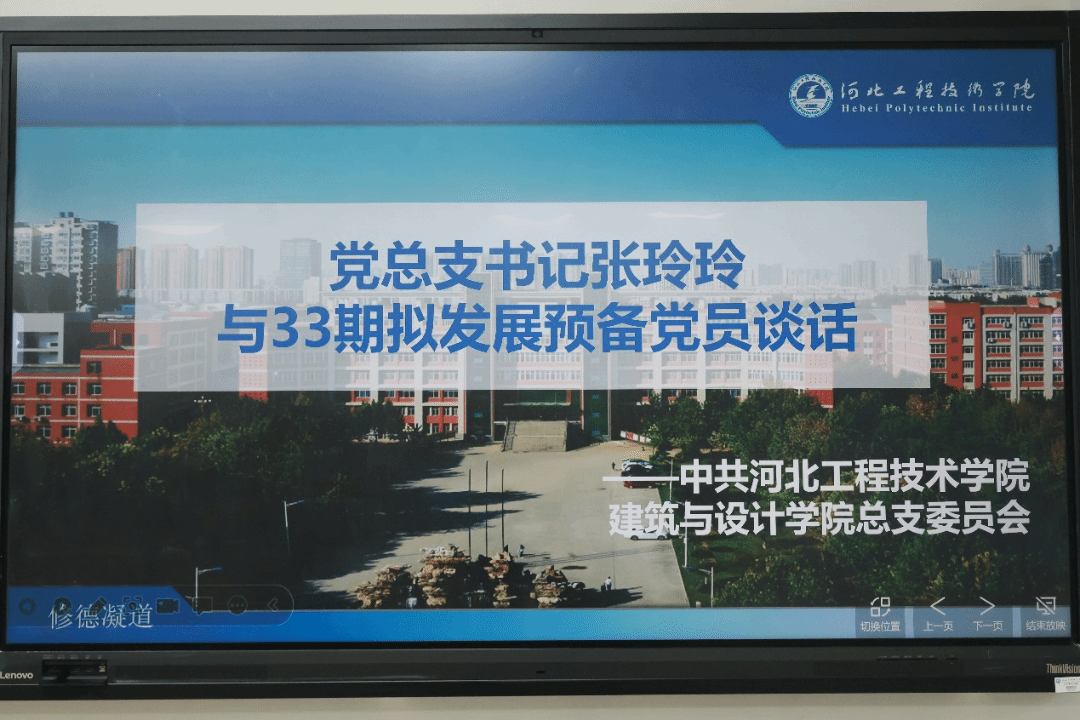 建筑与设计学院党总支书记、学管副院长张玲玲认真听取了拟发展预备党员的发言,就同学们提出的问题进行了回应,并且张玲玲书记对同学们提出四点:一、要求端正入党动机牢记党的初心和使命,深入学习贯彻习近平新时代 中国特色社会主义思想,坚定为共产主义事业奋斗终生的决心和信念。二、要自觉履行党员义务正确行使党员权利,在学习、工作和生活中时刻,保持奋发有为的精神状态,发挥模范带头作用,成为学生当中的引领者和示范者。三、要争当党的宣传兵,让党的声音传的更快更广,加强党的二十大精神学习,把党的理论讲给同学听、讲给朋友听、讲给家人听。四、要从自身做起,善于取长补短、勤于学思践悟,做到德智体美劳全面发展,为把我国建设成富强民主文明和谐美丽的社会主义现代化强国贡献青春力量。我院开展拟发展预备党员座谈会,目的在于让各位同志能够时刻谨记党员身份,勤奋学习,培养家国情怀,与新时代发展同频共振,努力成为祖国建设的有用之才、栋梁之才,在矢志奋斗中谱写新时代的青春之歌,在实现中国梦的伟大实践中书写自己的璀璨人生。