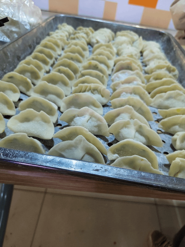 在包饺子过程中,同学们你一言我一语。托住饺子皮、取一勺饺子馅、捏好饺子皮、一个个个性十足的饺子就诞生了。同学们别出心裁的把饺子包成各种形状,饺子的摆放也错落有致,别具艺术气息。各个地方包饺子的方法不同,不同地域的同学也相互传授包饺子的经验,现场气氛格外热闹,经过共同努力,各式各样的饺子呈现在大家眼前。