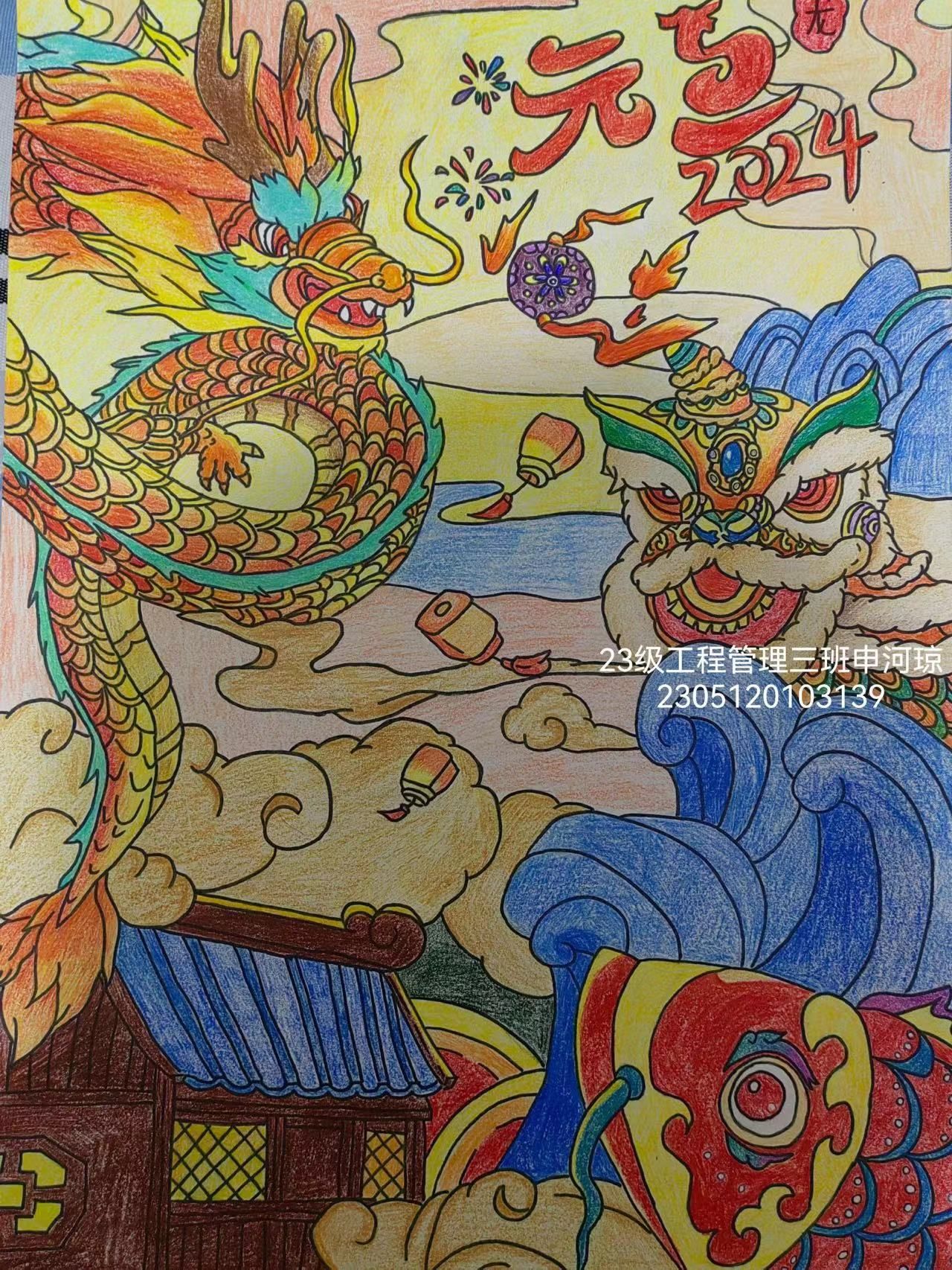 第一周活动中,同学们热情高涨,积极参与,充分发挥创造力和想象力,利用自己的专业特长,以“龙”为主题,用CAD或画笔描绘出自己心目中龙的样子,向同学和家人送上新年最美好的祝福。这些绘画作品构思巧妙、风格各异、色彩丰富,展现了龙的风采和气势,彰显了文化自信,也表达了同学们对即将到来的龙年的期待与喜悦。