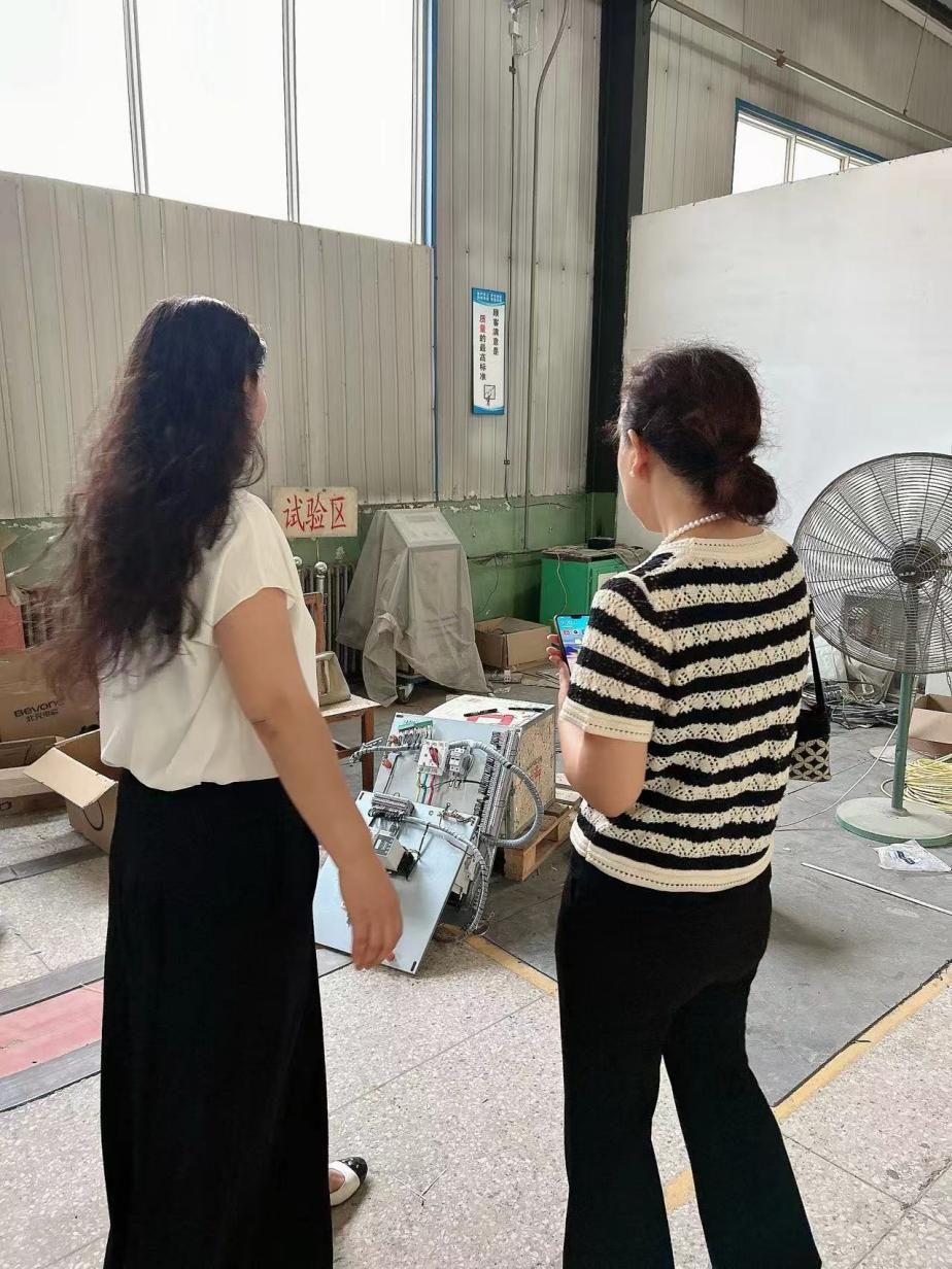 随后,在冯科伟总经理的陪同下,李伟娜副院长和钟爱琴系主任一行参观了计发电力的设备制造车间和电气安装调试车间。车间内,现代化的生产线、精密的检测设备以及忙碌而有序的工作人员给大家留下了深刻印象。钟老师近距离观察了电力设备的生产流程,并与技术人员就生产工艺、质量控制等方面的问题进行了深入交流。