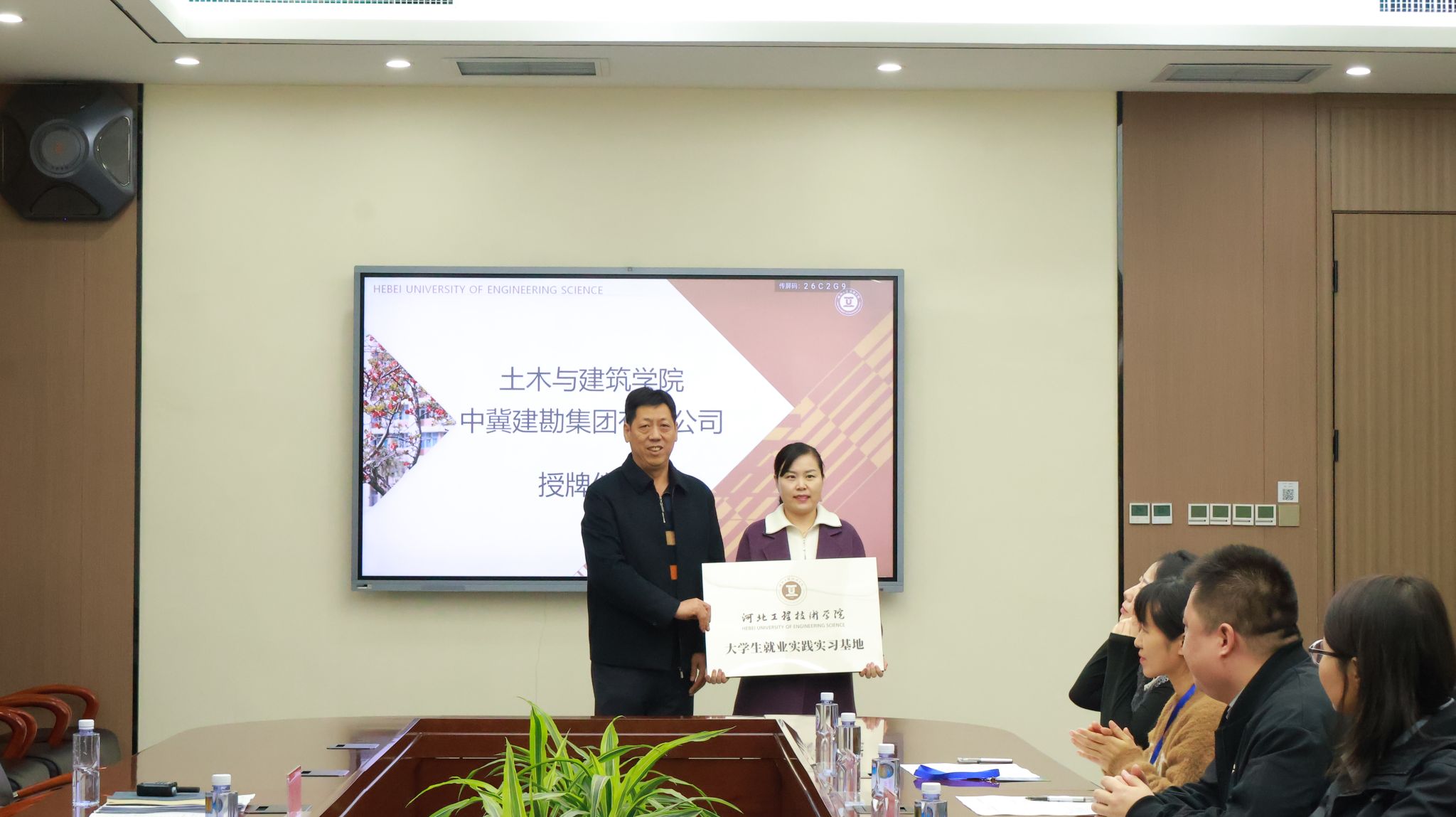 随后,校党委书记常新平分别为9家企业授予“大学生就业实践实习基地”牌匾。