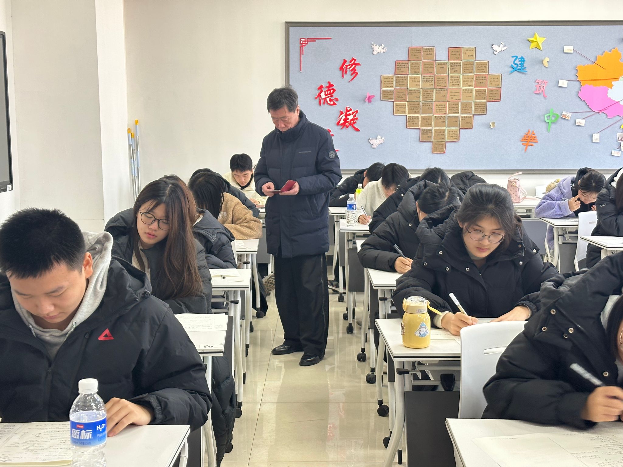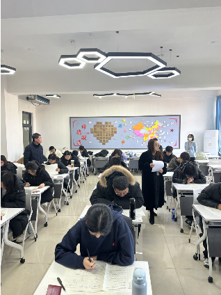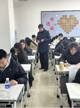 当日上午,张杰院长、谷雨副院长等一行来到考场,对考试组织、考场秩序、学生答题、监考教师履职等情况进行细致巡查。巡视过程中,看到考场布置规范,桌椅摆放整齐,环境干净整洁;考生们沉着冷静、认真答题,遵守考场纪律;监考教师们认真负责,严格执行考试流程,按时发放试卷,并密切关注考场动态,为考生营造了良好的考试氛围。