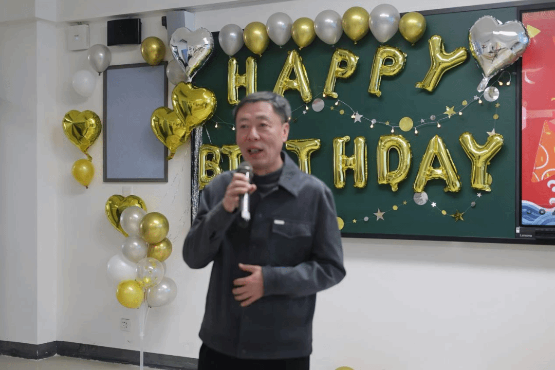 张杰院长表达了对教师的生日祝福和新年问候。他强调,学院始终坚持人情关怀,时刻把教职工的冷暖挂在心头。同时他对各教职工在2024年的辛勤付出表示衷心的感谢,并鼓励大家凝心聚力,在新的一年里创造更加辉煌的成绩。