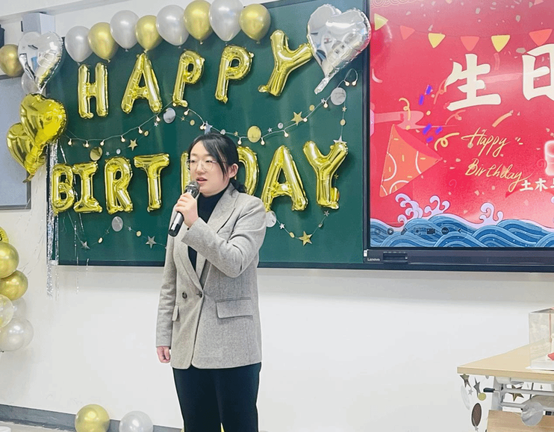 党委组织部部长李忆秋代表学校领导为我院职工教师送上生日祝福。她指出,学校教职工幸福指数不断攀升,每一位教职工都是学校发展的中流砥柱,他们用日日夜夜的坚守,培育着莘莘学子,为知识的传承与创新付出了无数心血,学校永远是教职工最坚实的后盾。这场生日福利活动,是学院对大家的感恩与祝福,希望在繁忙的工作之余,为大家送上最暖心的慰藉。