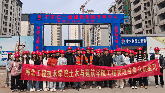2025年4月26日上午,在实习老师的带领下,工管大一学生走进石家庄市一建正定新区新城正弘府项目进行认识实习。该项目为住宅类项目,正在进行外装饰工程、室内机电安装工程、屋面工程、小市政工程和地下车库回填土工程等;实习中,项目工程师结合现场施工特点,重点讲解了进度协调、质量管控及安全管理要点。学生通过实地观察外装饰施工工艺、地下车库回填土分层夯实流程,以及园林景观与小市政工程的协同推进,直观理解了工程管理中多维度资源整合的实践逻辑。在室内机电工程区域,师生围绕管线综合排布、BIM 技术应用展开讨论,强化了对现代工程精细化管理的认知。通过沉浸式教学,帮助新生建立专业感性认知,为后续工程管理专业基础课程学习奠定了良好基础,同时引导学生关注绿色施工、智能建造等行业前沿趋势,培养工程实践与创新思维。