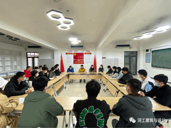 2022年11月6日下午3点,建筑与设计学院党总支书记、学管副院长张玲玲,学生党支部书记于伟,学管办主任刘腾,团总支书记王亚楠于主教602党员活动室召开党课培训动员大会。