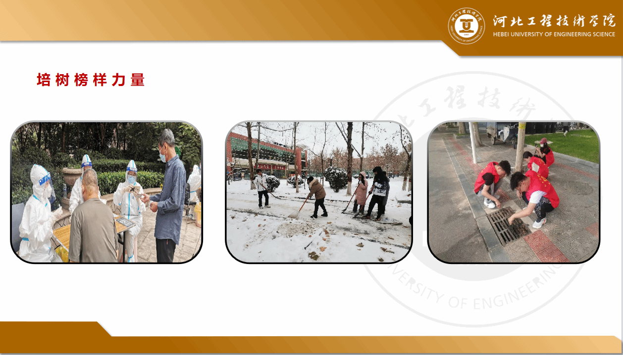 学院党总支连续五年开展“亮身份、做表率”养成教育活动,全体师生党员戴党徽、亮身份,设立党员卫生示范区,设置入党积极分子、党员学生示范宿舍,充分发挥了党员示范引领作用。逐步形成培育文化自信、培树榜样力量、三进三同等三项实践。