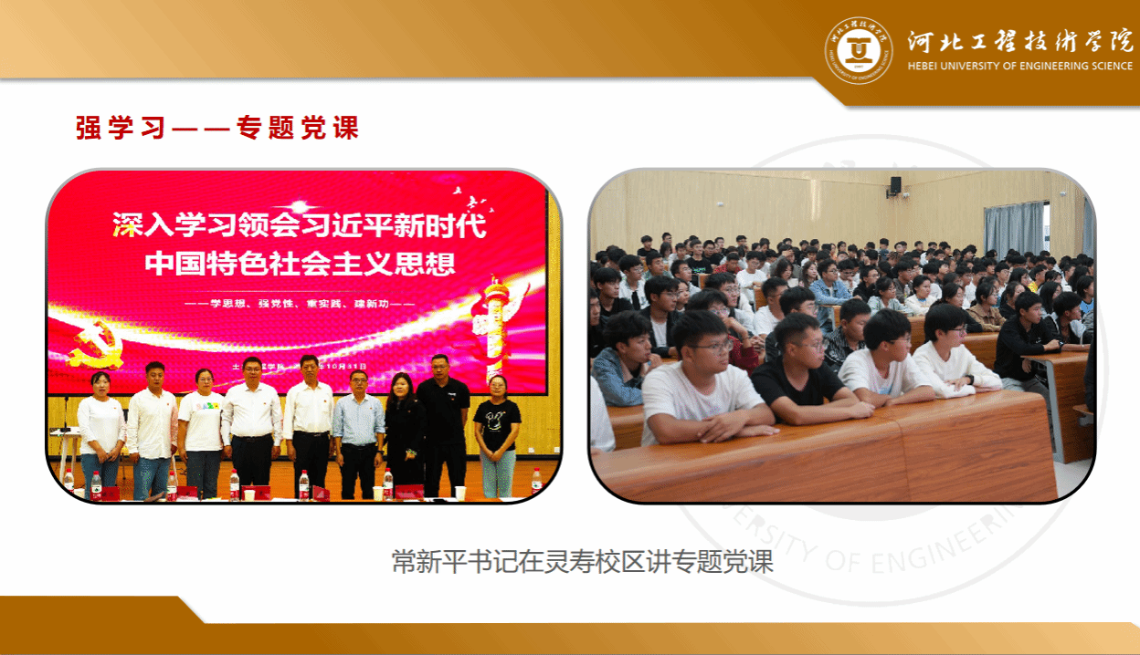 学院党总支立足人才培养,打造学习型党团支部,将党团员补钙铸魂工程做实落地,开展专题培训、开展专题讲座、开展专题党课、开展专题宣讲、开展专题组织生活会,用党的创新理论武装头脑、教育师生。