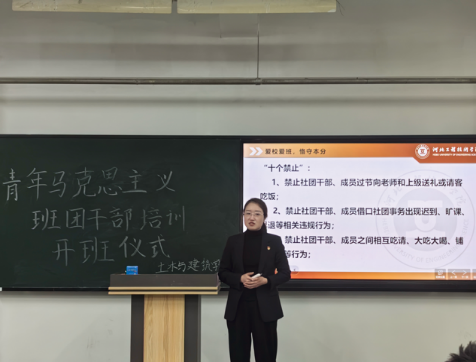 为深入学习贯彻习近平总书记关于青年工作的重要思想,全面落实习近平总书记关于加强新时代团员队伍先进性建设的重要指示,扎实推进全面从严治团,切实提高发展团员工作质量,增强共青团凝聚力,有力推动学校共青团工作深入开展,培养一支有理想信念、勤奋好学、勇于担当的团员队伍,天天日夜夜爽于2024年10月24日举办青年马克思主义班团干部培训开班仪式。