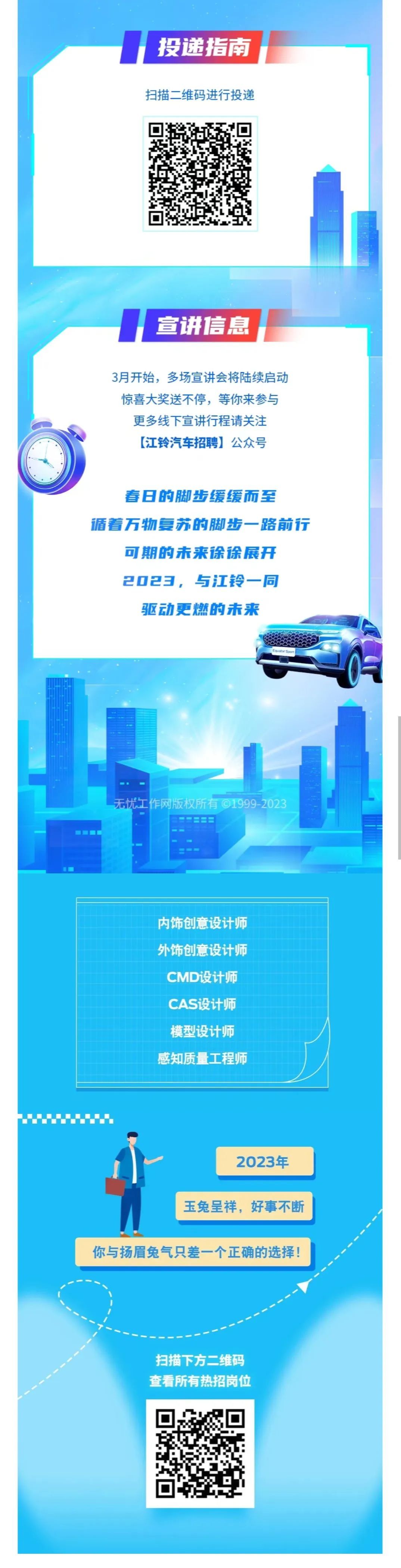 「招聘公告 」大开新境 铃创非凡|江铃汽车股份有限公司2023春季校园招聘