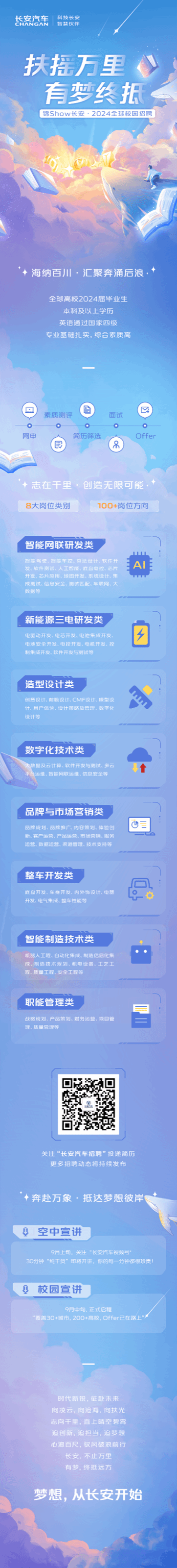 「招聘公告」长安汽车2024全球校园招聘正式启动
