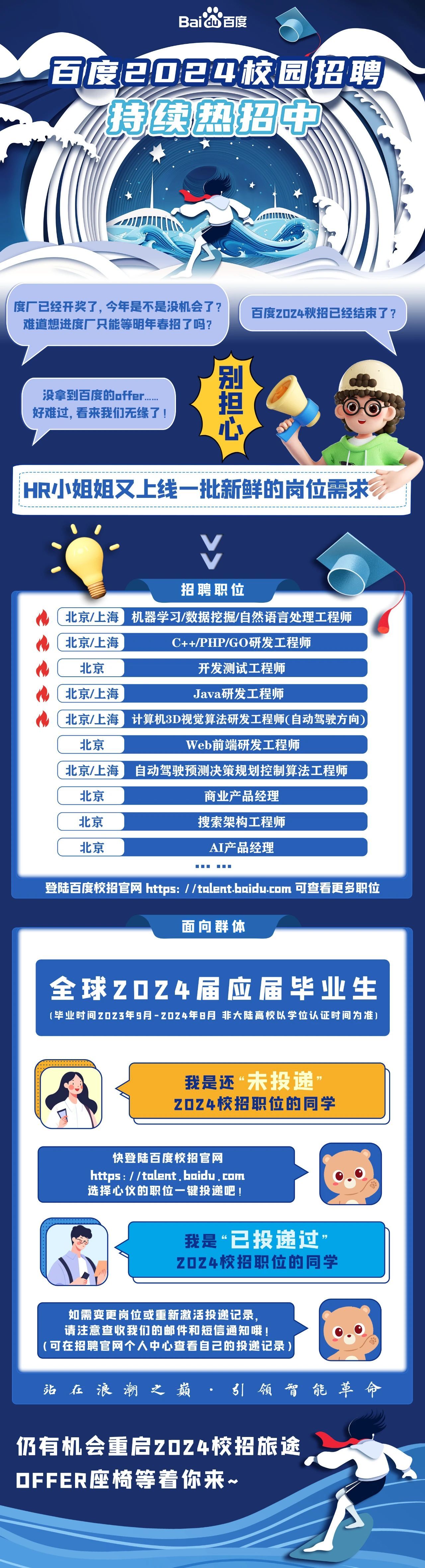 「招聘公告」百度2024校园招聘持续热招中