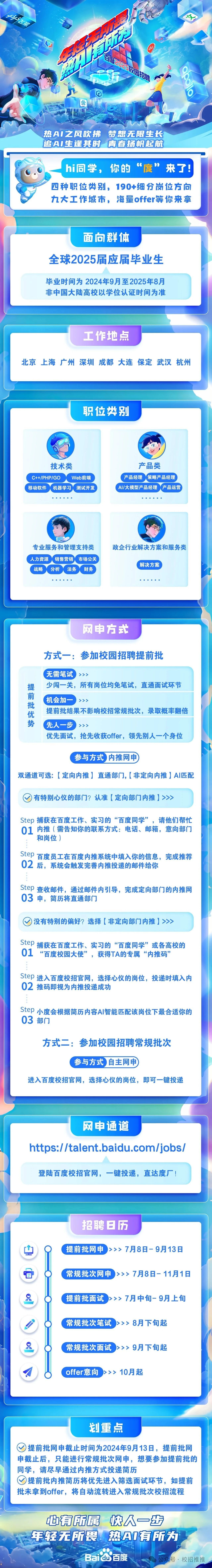 「招聘公告」百度2025届校园招聘