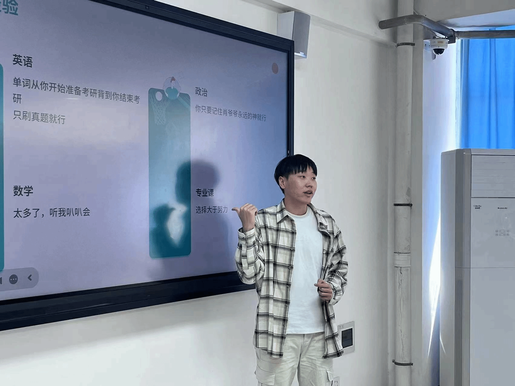 在分享中,陆鸿飞同学以自身的考研经历为引子,详细阐述了自己对英语、政治及专业科目的复习方法,并列出不同时间段应做的准备,同时强调备考时自律和坚持是尤为重要的,要找到适合自己的学习方法高效备考,他建议同学们可以寻找自己的考研“塔子”,在相互鼓励中携手进步。
